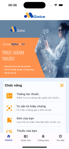 Bạn bè tôi học chuyên ngành khác. Mọi chuyên ngành đều có phần mềm hỗ trợ trong việc học và làm. Nay với app GABA tôi rất vui mừng vì chuyên ngành dược mình theo học nay cũng cố phần mềm làm công cụ. Đặc biệt chức năng tư vấn có sử dụng công nghệ AI nó làm tôi tự tin và không bị bỏ lại. Mong rằng trong tương lai GABA càng ngày càng phát triển hơn nữa.